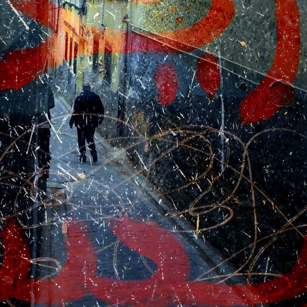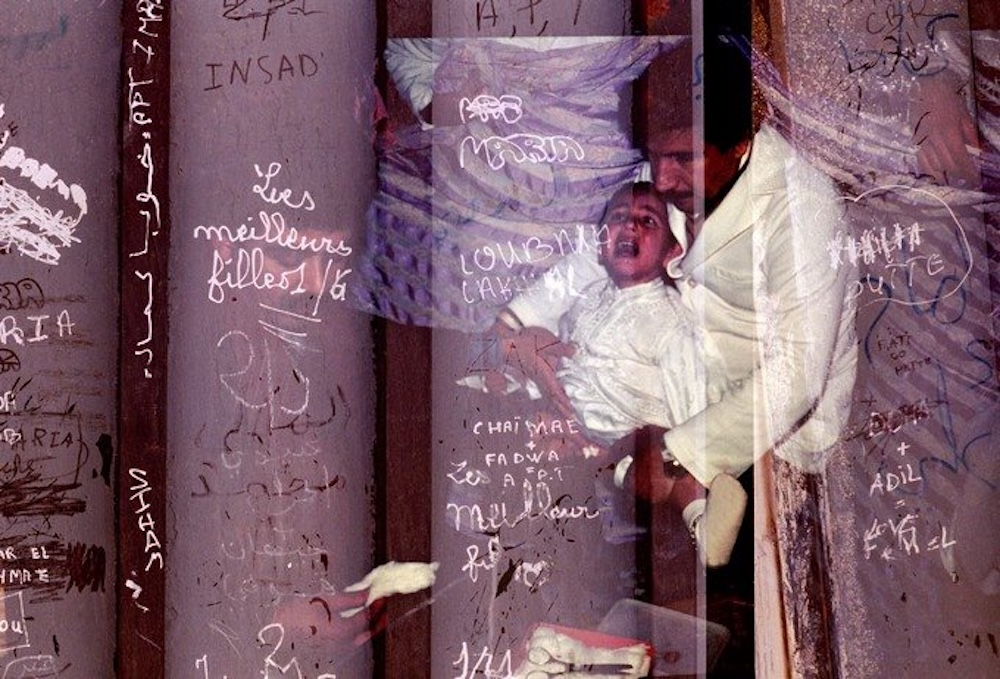 Plusieurs photographies partagées ici se fondent sur l’esthétique de la « troisième image ». Celle qui résulte, lors d’un diaporama, de la projection en fondu enchaîné de deux images. Techniquement, cette écriture photographique qui évoque le palimpseste repose sur la superposition d’images directement à la prise de vue sur film argentique.